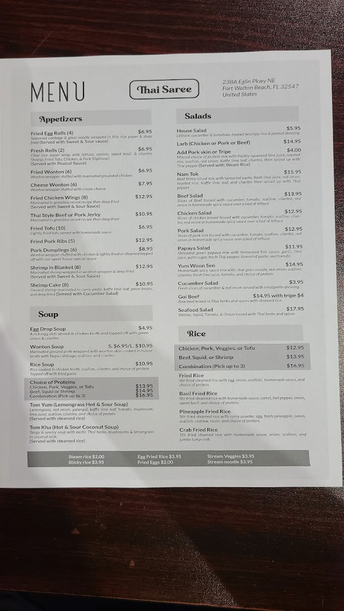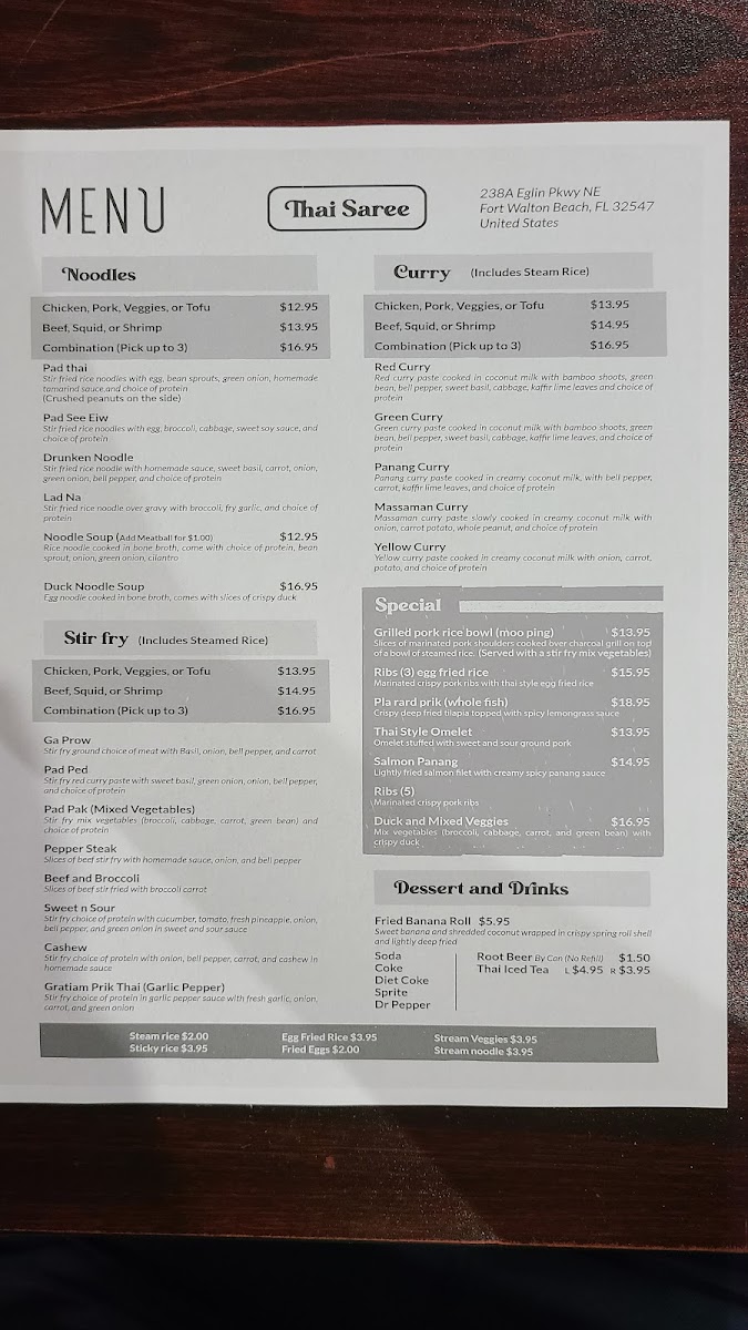 Whether you visit during lunch or later in the evening, the menu at Thai Saree supports a dining experience that feels familiar yet distinct, with each dish thoughtfully prepared to offer a little moment of enjoyment in your day.