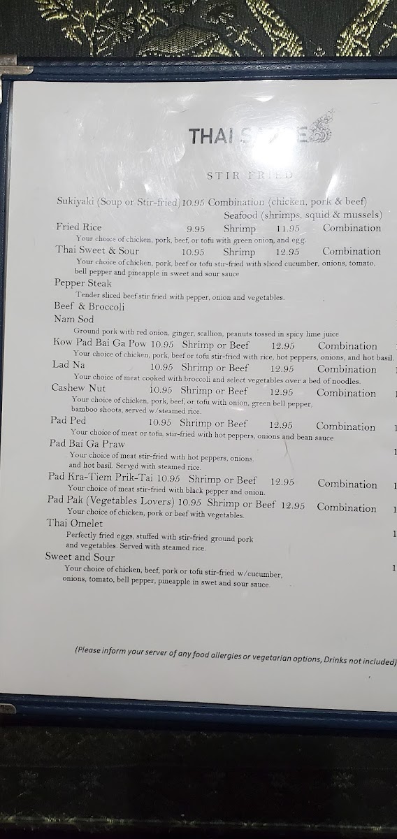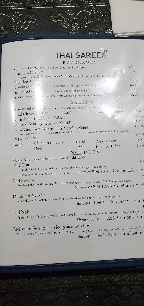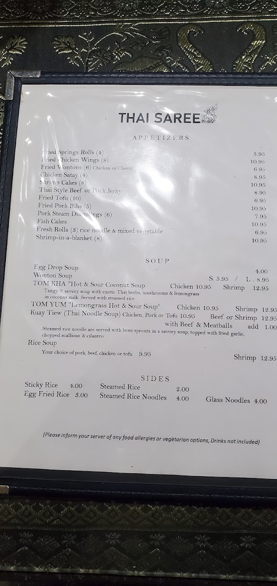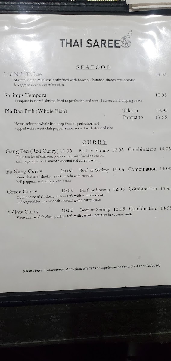 Thai Saree Menu