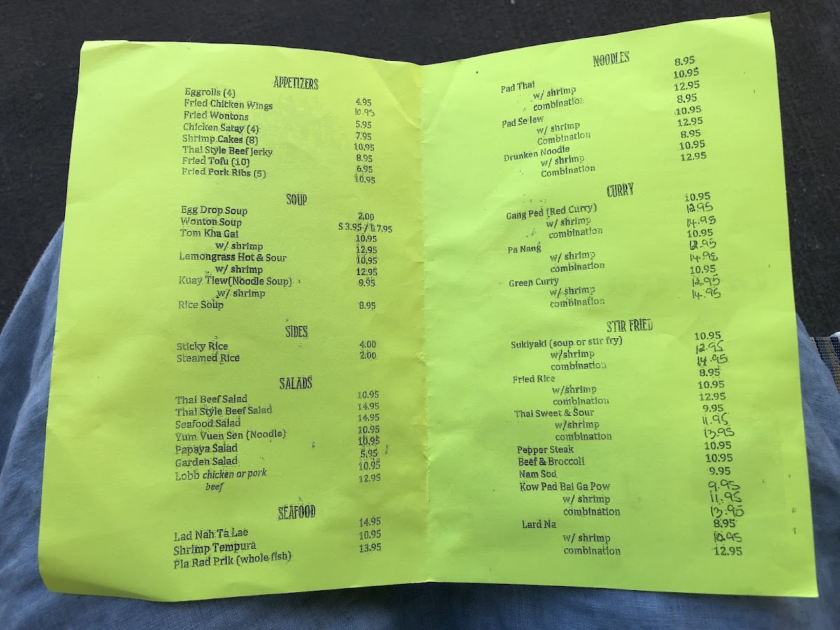 You’ll find well-loved classics like Pad Thai and Green Curry alongside fresh options such as Papaya Salad and Fresh Spring Rolls. Heartier dishes like the Grilled Pork Rice Bowl (Moo Ping) and Whole Fried Tilapia offer satisfying flavors that complement the friendly, unpretentious atmosphere. For those who enjoy lighter fare, salads made with vibrant herbs and seasonings provide a balance of freshness and spice, adaptable to your preferred heat level.
